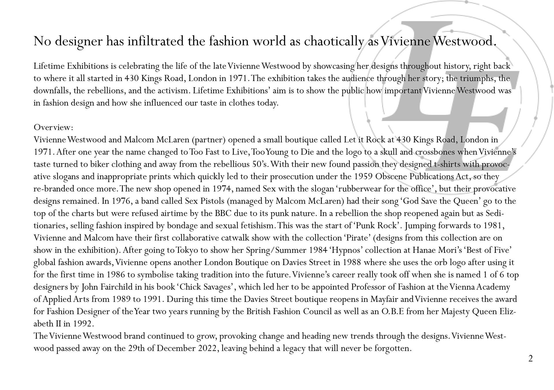 Poster, catalogue, and logo I designed for a Vivienne Westwood Exhibition